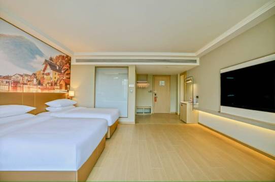 客房里的设备更是让人惊喜,床垫软硬度刚刚好,躺上去瞬间缓解旅途疲惫;卫浴的热水充足又稳定,洗漱用品都是大品牌,用着特别安心;房间里还配备了高速WiFi、大屏智能电视,出差或者度假住都超方便。