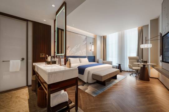 我们选的是行政大床房,非常满意,前台小姐姐服务态度非常好,酒店房间宽敞明亮,用品干净卫生,一进去就心情愉悦,设施也很新,初三到初四住的,因为没有其他更经济的房型可以选了,不过还是觉得价格是很值得的,早餐也很不错