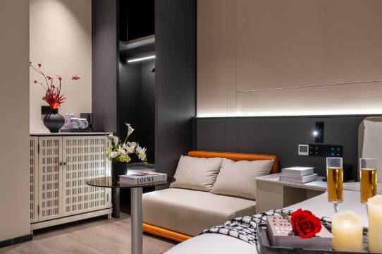 房间内部干净整洁得让人安心,床品柔软舒适,躺下就不想起来,完全能睡个好觉。洗漱用品品质很不错,细节里藏着用心,加上免费迷你吧的补给,住得格外舒心。