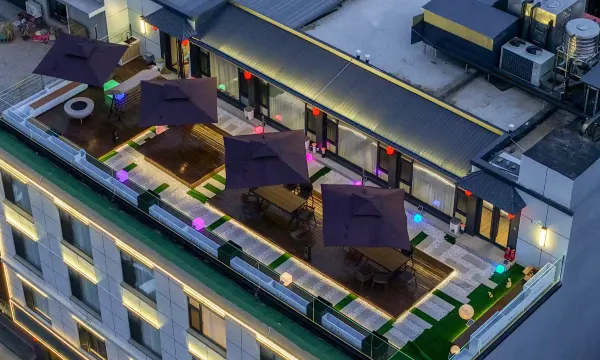 25年开业的,各方面都非常新,在古城的北边,站在房间窗前可以看到古城,古城墙外面是公园,很漂亮,酒店有阅览休闲室,有歺厅,除了自助早餐,还可以点菜吃中歺和晚歺,离古城北门和西门走路约10几分钟,顶楼有观景平台,也可小坐休息。房间干净整洁舒适,各种用品很全,空调冷气很足,29度就很凉快了,走廊都有冷气。唯一不足的是房间可供随手放小东西的台子蛮少,水台也很小,孩子占据了桌子写作业,我们就没有台子可用了,厚被子多余的枕头都没地方放,另外就是才开业的,稍稍还有些装修后的气味。总之满意。