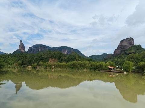 小山村三面环水,绿荫葱葱,宁静而优美,难得的世外桃源。在村口最显眼处有一颗美丽的木槿花,木槿云名宿温和的映衬在旁边,虽说是名宿,可是设施环境和布局一点儿不输酒店,房间干净、宽敞而舒适,最喜欢整面的落地窗,窗前的摇摇椅,透过明净的玻璃欣赏丹霞的风貌,清澈河水和翠绿的竹林,悠然自得,惬意无穷。农家菜肴也新鲜美味,自家种的花生颗粒饱满香味无穷,老板英俊潇洒,热情诚恳,值得信赖。