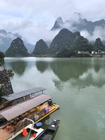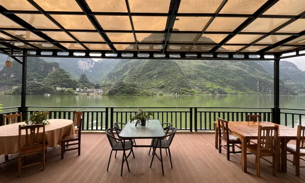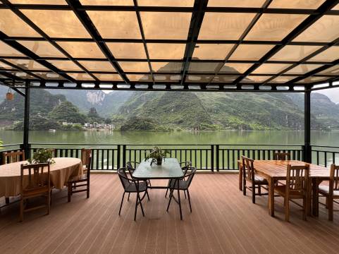 非常非常独特的地点,喀斯特地貌和翠绿的河水就在窗外,人很少,店家热情周到,做菜也很可口。房间设计的景观无敌,卫生很好,物超所值。值得推荐。店主特别实诚,水上的舢板随便玩耍,河水很暖和。适合几家人,公司团建游玩