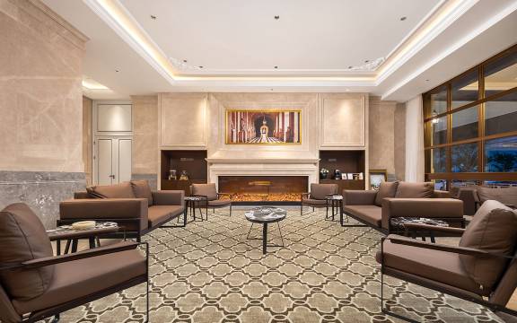 带小孩入住很合适 房间布局豪华典雅,餐厅早餐也是齐全,前台005服务也是不错,干净卫生还是很可以的,房间还有智能小度,楼下有机器人,下次还会选择这家酒店,当天还下雪了 好看