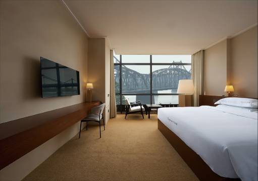这次入住体验非常棒,酒店位置就在鸭绿江畔,江景房落地窗直面一线江景,交通便利楼下就是停车场🅿️,出行🚗和用餐🍽️都很方便。房间干净整洁,原木风装修,床品舒适,休息得很安心。前台服务热情周到,办理入住和退房都很高效,设施维护得不错,整体性价比很高,下次来丹东还会选择这家,强烈推荐!