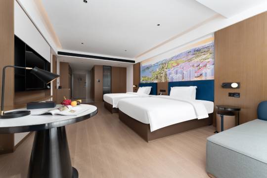 酒店位置优越,靠海滩,周边还有餐饮店。前台帮忙免费升级成海景房,智能窗帘,智能马桶等设施体验感很好,房间里干净卫生,两张1.5米的床各自睡的都很舒服,有机会来还住这里。