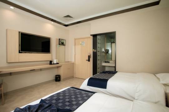新开的一家酒店,床单被罩都是新的,没有一点污渍,能感受到酒店在清洁方面的重视,新装修的房间没有异味,空气清新,让人住的非常安心,卫生间淋浴区的水压强劲,洗漱台的镜子明亮干净,洗漱用品都是高品质的,强烈推荐🍺
