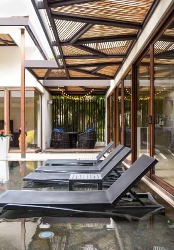 三栋独立的建筑仿佛漂浮在中央泳池之上,泳池中央矗立着一座精美的“泪墙”水景雕塑,白天波光粼粼,夜晚则潺潺流水声悦耳动听:前两栋建筑均为主卧套房,配备特色天花板、户外淋浴、**床品和床上用品。每间卧室以及主起居区面向高尔夫球场一侧均配备遥控卷帘,可随时保护您的隐私。第三栋建筑分为两个空间,一侧是配备大床的卧室/浴室,另一侧是主要起居区,设有配备齐全的现代化美食厨房、餐厅和客厅,客厅拥有手工打造的木桶形天花板,可饱览高尔夫球场、远处山丘以及内部庭院的壮丽景色。夜幕降临,泳池灯光和别墅内精心设计的间接照明营造出独特而轻松的氛围。别墅配备高速无线网络、有线电视、智能电视以及烹饪美食所需的一切用具,包括先进的电磁炉。客人可使用度假村内所有业主专属设施。度假村提供免费班车服务,可随时前往度假村内的任何地点。可前往占地 55,000 平方英尺的卡塔利娜私人海滩俱乐部,这里拥有精致餐厅和休闲餐厅,提供海滩和泳池畔服务;此外,还设有 80 米长的海滨游泳池、先进的健身设施、独立的儿童泳池、热水浴缸、全方位服务的 SPA 中心、美容沙龙、24 小时**中心和商务中心,以及各种水上活动,例如水上摩托艇、滑水、皮划艇、立式桨板、脚踏船、滑板车、自行车、钓鱼和潜水之旅。免费使用泳池边和海滩上的躺椅。