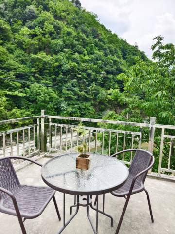 订房仓促,3人订了2人床,老板贴心搭了1被褥地铺,感谢🙏。新装修的房子,东临山溪,即使白天户外41℃,晚上22点后阳台依然阵阵凉意(26-28℃),喝茶聊天绝佳。离溯溪点1KM,很多人特意远道而来亲子戏水看瀑布,老板往返还负责接送👍。老板娘厨艺不错,芋头杆糯糯的、嫩笋干鲜香可口、压扁小土豆和猪肉,原生态健康满满