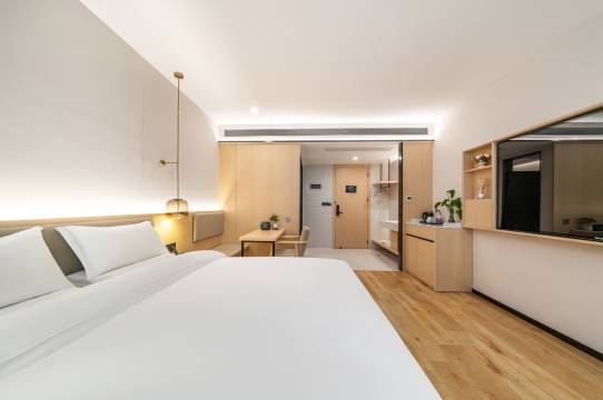 酒店环境不错,房间干净整洁,还有智能小度,乳胶枕睡的很舒服,卫生间干湿分离的非常好,设施也非常的齐全,周边吃饭游玩都非常方便!