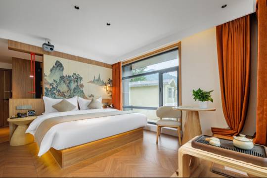 别院坐落于中国山西五台台怀镇南岸沟村一巷 12 号,地处佛教圣地五台山,是一处能让你在山水间沉淀心灵、享受静谧时光的栖息之所。民宿的魅力在于与五台山风光的紧密相融,推窗便能望见巍峨的山峦,满眼青翠与苍茫交织,仿佛将整个五台山的灵秀都纳入怀中。在这里,你可以随时开启一场爬山之旅,沿着山间小径漫步,感受清新的山风拂面,聆听林间鸟鸣虫吟,在自然的怀抱中放松身心;同时,作为位于五台山的民宿,周边寺院众多,方便前往祭拜,在虔诚的氛围中感受信仰的力量。房型设计以安静舒适为核心,室内环境清幽雅致,远离喧嚣,尤其适合老人静养和孩子安睡,让举家出行的每一位成员都能享受到安稳惬意的居住体验。民宿拥有宽敞舒适的公共空间,是亲友相聚、交流闲谈的理想场所。此外,还配备了餐厅、茶室、洗衣房等完善设施:餐厅提供美味餐食,让你品尝到地道风味;茶室是休憩品茗的好去处,在茶香袅袅中静思过往;洗衣房则为长期出行的旅客提供便利,贴心周到。房间装修走轻奢路线,将精致与舒适巧妙融合,柔和的灯光、质感十足的家具与精心挑选的装饰相得益彰,营造出高雅而温馨的氛围。民宿房型丰富多样,涵盖大床房、双床房、三人房、四人房、亲子房等,能满足不同人群的出行需求。无论是情侣出游、朋友结伴,还是家庭团聚,都能在这里找到合适的房型,尽享舒适住宿体验。曼心别院(五台山风景区店),以其优越的地理位置、舒适的居住环境、完善的配套设施,为你的五台山之行增添一份宁静与美好,让你在山水与信仰的浸润中收获别样的感悟。