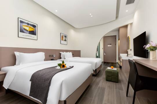酒店很新,房间环境很干净整洁,服务态度很好,前台还很贴心,服务好,酒店很喜欢。性价比很高。很适合在花溪附近游玩入住!