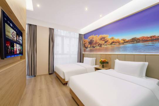 房间干净整洁,宽敞明亮,两张大床,交通便利,停车方便,周边设施齐全,店家服务周到,新疆旅游景点很多,打车方便,非常满意。