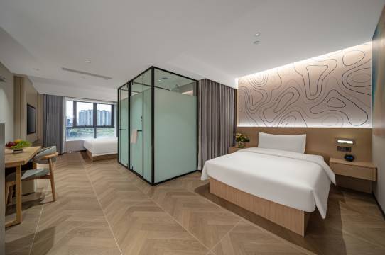 位置便利出行省心,房间干净整洁无异味,床品柔软睡得很舒服,全屋智能很方便,前台服务热情,性价比超高,值得推荐。