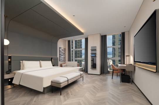 房间很宽敞,智能设备很方便,落地窗视野很开阔,小朋友很喜欢,晚上赠送的粥小朋友很喜欢喝。酒店离湖北博物馆很近,周边出行很方便。