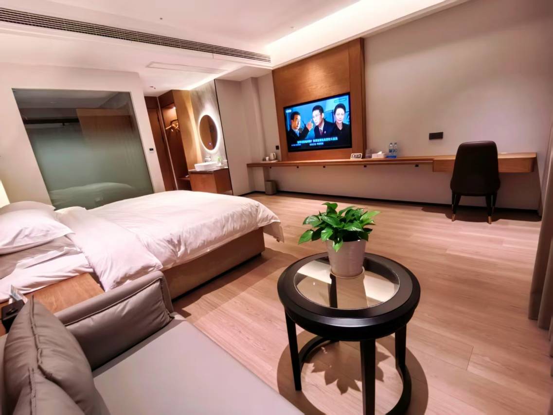 房间很新,都是智能化。有天猫精灵住着很舒服,特别是床铺。特别舒服,值得推荐,商务出差。