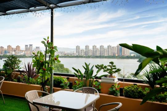 在房间里可以直接看到湖面,风景很好,我们住的四楼,估计高楼层风景更好,离开时老板还送我们每人一瓶矿泉水,很温暖,值得一去。