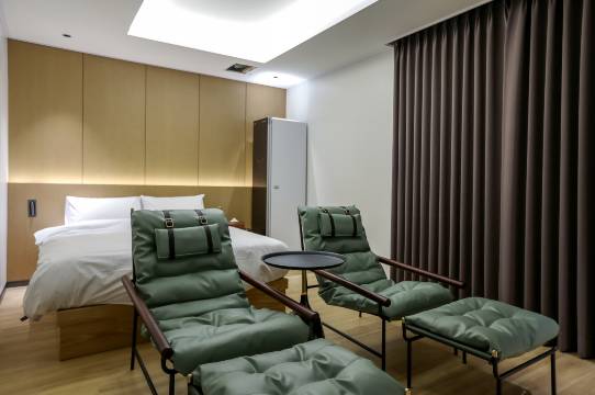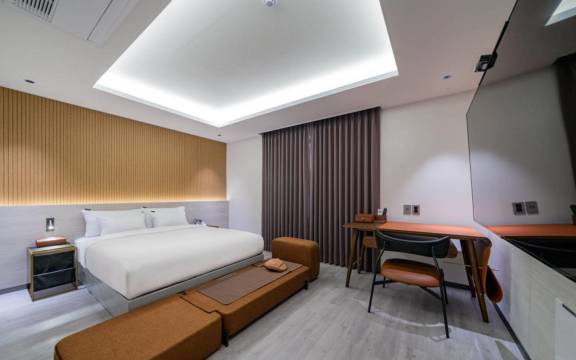 这是一家干净整洁、新建的酒店,地理位置优越。附近有很多餐厅和咖啡馆,步行即可到达江原大学,非常方便。早餐很美味,停车也很顺利,这让我松了一口气。不过,房间和浴室里没有地方晾衣服或毛巾,这一点有点令人失望。