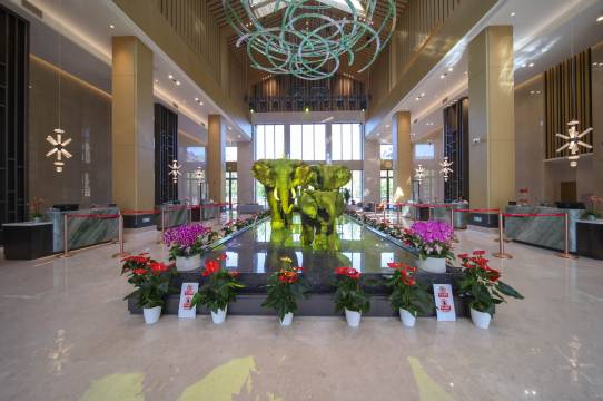 客房设计巧妙融合东非草原的原始野性与现代艺术格调,标配智能卫浴、高品质床品及私人观景露台。家庭房尤为匠心独具,化身儿童动物王国,配备树屋造型儿童床、生动动物壁画与专属玩具角。酒店核心亮点是中央亚热带雨林生态区,构建“绿水青山”典范。尼罗鳄栖息水域,红毛猩猩、金丝猴、环尾狐猴、丹顶鹤、非洲斑马等珍稀动物悠然共处,展现和谐共生画卷。设施配套尽显奢华与周全,全景自助餐厅、恒温星空泳池、儿童淘气堡、大浪水乐园、古法茶馆、竹海音乐厅、星空太空舱、森林木屋等一应俱全;地上地下600余车位解决停车之忧。