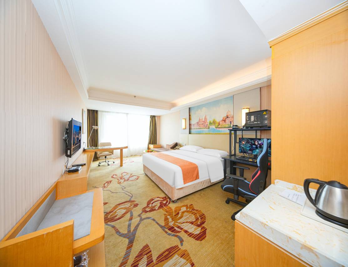 本酒店是竞族电竞酒店集团电子竞技连锁酒店。酒店位置优,交通便捷,出行便利。酒店周边配有完善的生活和服务设施。新颖时尚的设计风格恰到好处的阐述了酒店与电子竞技的理想结合。大床房到双人间满足各种宾客的需求。酒店配置专业电竞设备以及提供专业的电竞服务。为游戏体验增添流畅度。酒店每个房间都配备了品格高端定制床品,高星标准,让你可以在游戏的世界畅游一整夜后能好好休息! 本酒店为电竞爱好者提供一个全新的住宿和娱乐体验,也为电竞爱好者提供一个放松和享受的好去处!