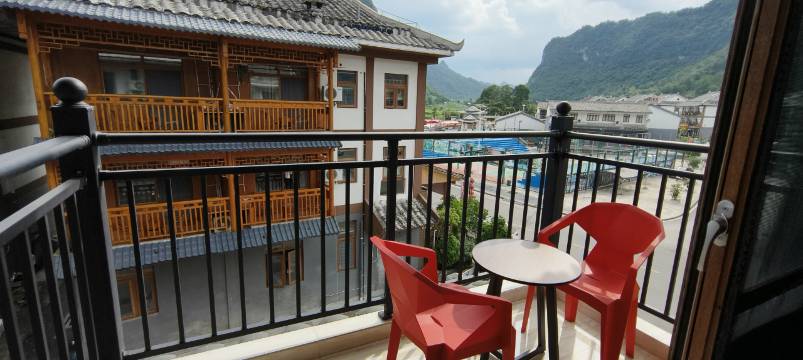 房间自带一个阳台,空间也足够,放个26寸的行李箱也可以活动自如,厕所不是玻璃墙构造,隐私保护✔️,在阳台可以看到外面的山,特别喜欢民宿左侧的猫猫山,感觉超级可爱,去小七孔西门也很近,自己打车5~6元(去程民宿老板派车送了,返程自己打车回来的,3分钟左右就到了),延迟退房需要问一下,老板会根据情况和你约定时间。另民宿的饭菜也很好吃!本来只点了两个菜,尝了两口又加了个菜,猛炫了3碗饭!