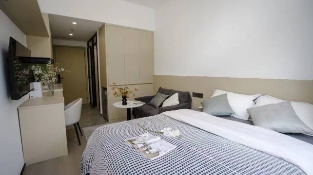 设施:很完善的公寓设计,床品很舒适,有沙发和写字桌,很适合来附近考试学习的朋友