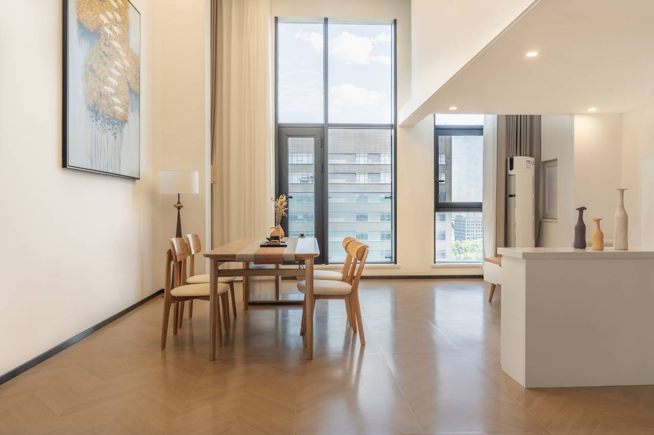 ✅ 空间通透颜值在线,挑高够高完全不压抑,浅色系装修干净又显亮,落地窗采光超绝,白天屋里敞亮不用开灯,随手拍都自带氛围感,发圈根本不用修图。