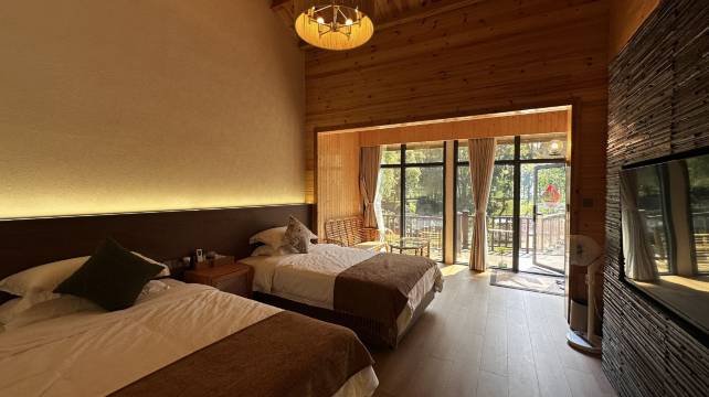民宿的位置非常安静,院子里很多名贵树木,环境宜人,整个一个世外桃源,凌晨入住,在院子抬头就看到了满天星空,清晨醒来都是小溪的流水声,和课本中小鸟在树上唱歌的声音。外面美,里面更美,房间装修特别舒适舒适,进来就是木头香,卫生间干湿分离,水量特别大,本人住宿非常注重卫生间,这个小木屋堪称完美,而且洗漱用品质量也特别好,一次性浴巾,牙刷质量完全💯,而且民宿的老板非常友好热情,饭也超级好吃,睡了懒觉吃过中午饭才走的,一桌荤素搭配,食材很新鲜,炒白萝卜甜甜的,是老板自己种的,厨师知道我们是山西人,特别贴心给上了陈醋,院子里还有小金桔,摘来尝了一下,很好吃😋,虽说是赶路路过这里,但是下次有机会一定还会再来,想要远离城市喧嚣的家人们冲就完了,一整个世外桃源喔,非常适合放松身心!