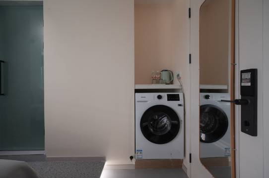 超级喜欢这个房间,很惊喜,还有独立包装洗衣液,一次性拖鞋质量也不错,有独立洗衣机和小冰柜,前台很细心热情,楼下周边就有吃的,出门就是地铁,喜欢安静点的贝贝可以订靠里的房间,整体来说很满意。用热水的需要调久一点等水烧好了再洗澡