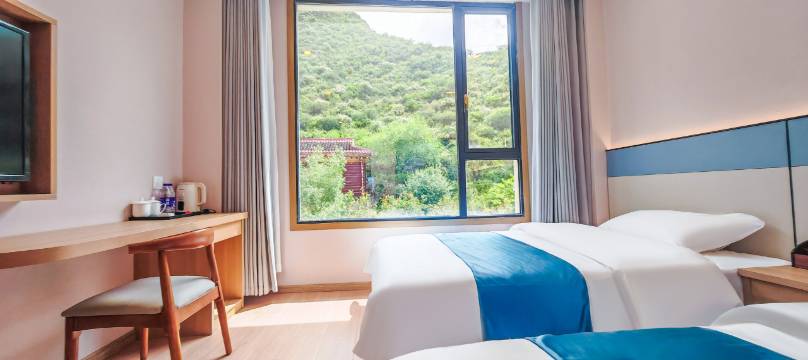 房间干净整洁,设施齐全,拉开窗帘就能看到大山。酒店有前后两个停车场,非常方便。周边吃饭也很方便。性价比很高