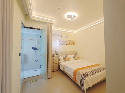 酒店在一个新小区里,设施特别特别新,一进门就很惊喜,超级干净,各种用品也都很不错,马桶是智能的,投影仪晚上看电影超舒服!打扫卫生的阿姨负责又温柔,这个价位住到这样的酒店值了!
