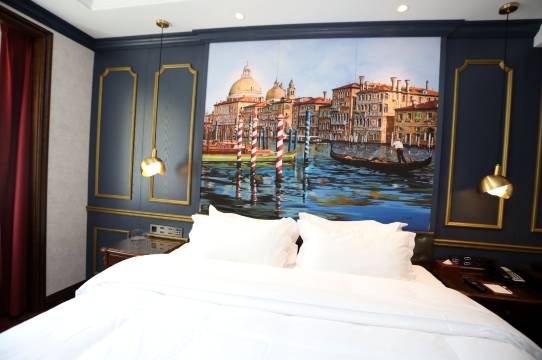 套房酒店性价比高,房价装修高档,设施一应具全,电梯一层一个房间,旺季这个价格比其他的性价比高,就在罗曼假日酒店后院内,导航罗曼假日酒店由保安安排停车位置,旺季出门停车也还方便,出门就是步行街,走下去不远就是卢布里那几个网红俄餐厅。不好的地方:新装修的关系,还是稍有点味;浴室蓬头出水太小,但洗漱台出水大,估计是在房外被关了?或是故障,当晚艰难洗完澡洗完澡,报修,结果用房间电话打前台、客房服务电话都没人接。还有就是房间内用水为百岁山,好评,但只放了两瓶,因电话没人接的关系,不知道能不能续。