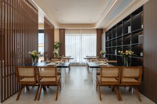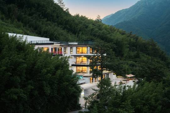 在安吉的群山褶皱里,森野民宿是一方遗世独立的天地。它栖于高海拔之处,像从云里裁下的一角,把城市的喧嚣远远甩在山脚下。民宿位于安吉九亩井空里大峡谷上端,背靠浪漫山川景区占地面积1800平米,一共四层。民宿设计风格融合了自然与现代元素,原木的温润质感搭配上简约的家具。在连绵起伏的山峦间, 民宿宛如一颗璀璨的明珠,静卧于高海拔之地,营造出轻奢又宁静的氛围。