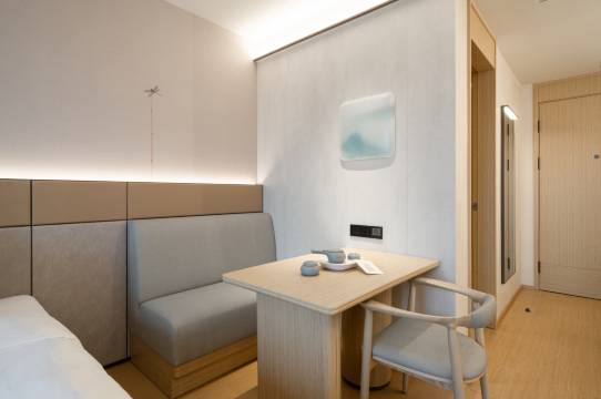 新开的酒店,是5.0版的全季,带来的体验感也不一样,有免费的停车场 ,进门就有一股淡淡的清香,有自助的入住办理机,很方便,前台也很贴心,一直在旁边协助,大堂有一个很大的茶室,很适合日常办公休息,我住的6楼,面向小区,非常安静,楼下有一个洗衣房和健身房,衣服洗好了会送到房间,健身房没去体验,下次再来吧,总体还是满意的