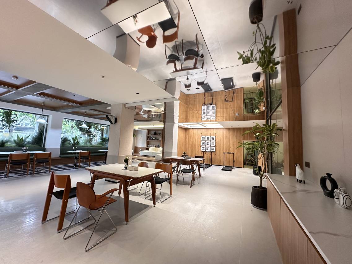 设施:非常好,都很新,也完全没有新装修的味道。空间布局非常合理,进门有足够两个行李箱存放的位置,挂衣服的地方也很多。房间动线规划非常合理,桌子也够多。靠窗的位置很宽敞,落地窗很亮堂,空间完全不会感觉到局促。排插该有的地方也都有,马桶、窗帘都是智能的。2倍的化妆镜很实用。床品很舒服,触感、柔软度都不错。水是怡宝的,一楼有饮料,都是畅饮的。