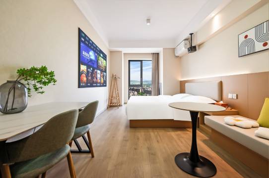 新来的一家公寓酒店,就在月登阁地铁站旁边,出行很方便,房间很宽敞,设施齐全,打扫的很干净,特别是大大的落地窗,视野太棒了,投影还有会员,性价比真是无敌了