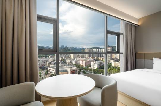 全季河池金城江职教中心酒店,始终秉持全季品牌 “东方美学生活” 理念,将传统东方韵味与现代简约设计完美融合,以高品质的服务、智能化的设施和舒适的入住体验,为每一位旅客打造旅途中的 “诗意栖居”。无论是商务出行还是休闲度假,全季酒店都能满足您对品质生活的追求。 酒店河池金城江店位于河池市城西大道 27 号,地理位置周边交通网络四通八达,大大节省您的出行时间。 酒店拥有107间客房,全屋配备智能客控,智能语音助手,智能卫浴设备,美国金可儿品牌床垫,定制香氛洗沐用品为您带来一夜酣眠。 酒店内还设有温馨的茶空间、静谧的阅读区、自助洗衣房,配置LG品牌专业洗、烘机,健身房等公共区域,满足您商务办公、休闲放松等多样化需求。 无论是短暂停留,还是长期旅居,全季河池金城江职教中心店都将以贴心的服务、舒适的环境,让您感受到 “宾至如归” 的温暖。