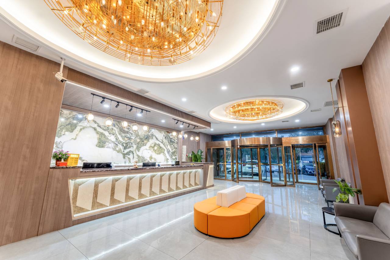 大厅卫生干净,咱们酒店的地理位置很好,交通很方便,环境很优雅,而且他们的装修很不错,服务态度非常好,前台小姐姐非常耐心解答我们的问题,酒店房间的环境也很舒适,视野很好。