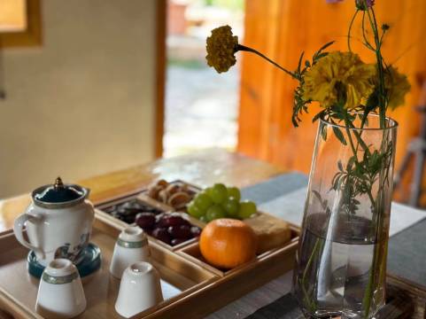 坐拥清溪竹林环绕的自然院落,推窗即见溪水潺潺流淌。春听溪声、夏捕流萤、秋观星野、冬煨暖茶,四季皆是山水画卷。打造了11间主题客房,保留夯土墙、木梁顶等乡村肌理,融入现代简约设计。功能区配备茶具书本、熏香精油,实现传统与现代的碰撞。闲时可参与溪边写生、古法草木染体验,感受“慢工出细活”的生活哲学;还有颂钵音疗体验,在自然中疗愈,让时光更慢点!