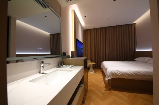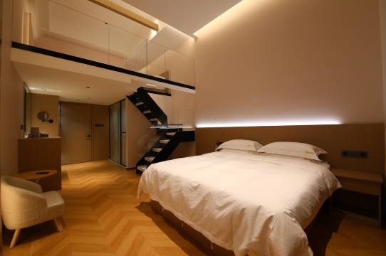 预订的大床房,满房了,前台热心小姐姐零差价给更换的复式,环境卫生都非常好,特别特别的干净,装修也很精致,全屋智能,非常方便,位置在中央大街附近,交通便利。