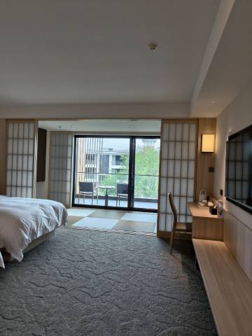 新建的酒店,带私汤的房间非常赞,外面玩一圈累了,回来直接泡温泉,很舒服。服务也很好,遇到的酒店工作人员都很有礼貌,服务不错。唯一的小瑕疵,房间客厅区域没有插座,为了不打扰家人休息,只能抱着电脑夜里到大堂看球,也由此偶遇了酒店老板,老板半夜还在,相当敬业!