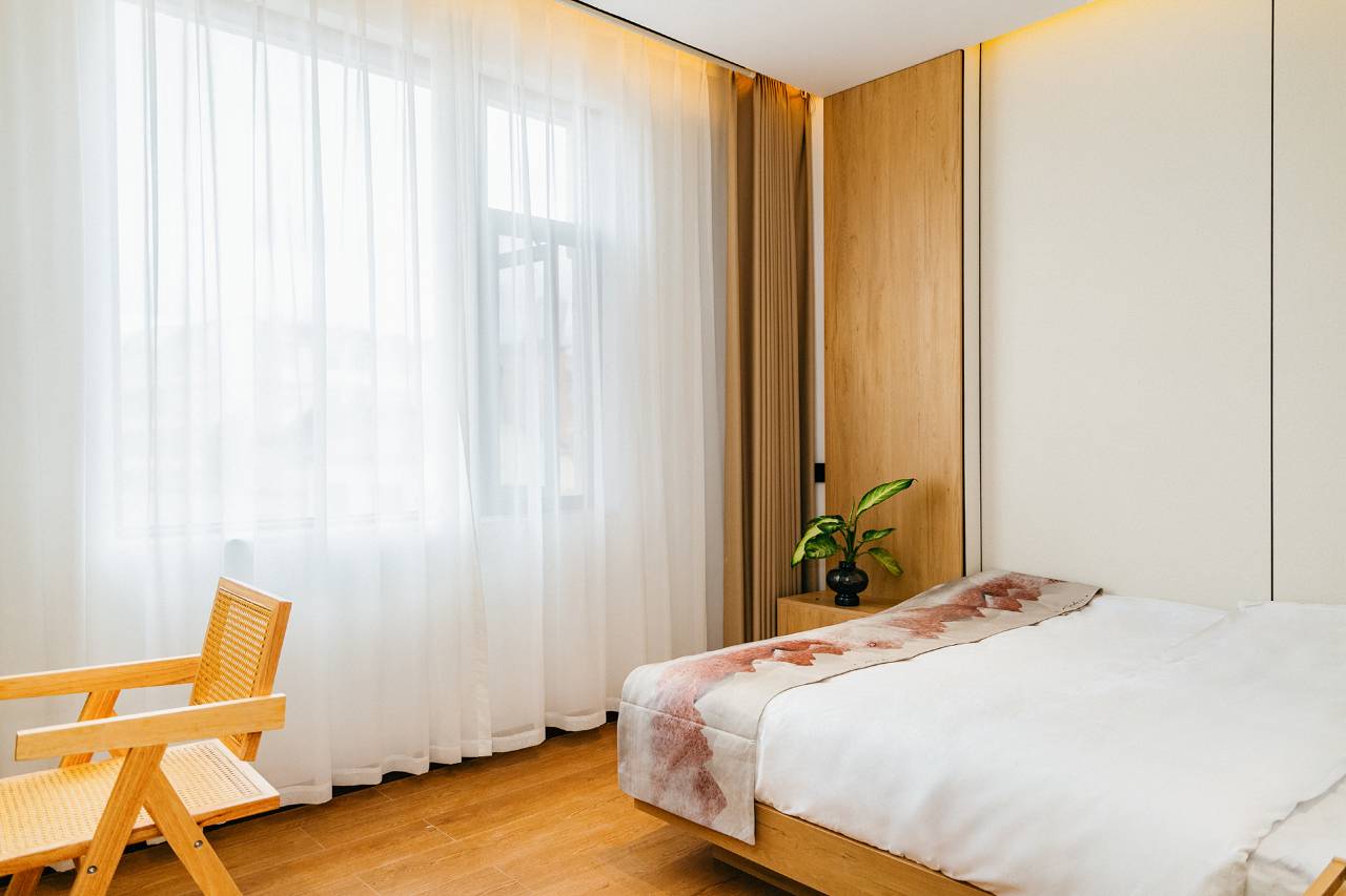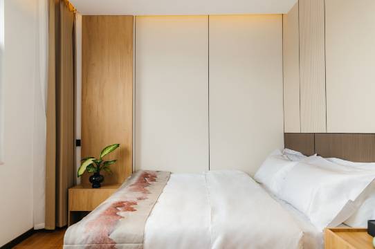 房间很大,卫生干净整洁,晚上特别安静,睡得超舒服。卫浴三湿分离很实用,还有巨幕投影看片超爽,全屋智能超方便,整体体验很棒,推荐入住!