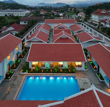 一家中国人开的酒店,很新,最值得点赞的是房间特别大而干净,特别宽敞还是复式,床很舒服,睡得香香的,浴室的花洒不算太好,有点散水。太不巧有一晚说是整个琅勃拉邦停水,尴尬的等了一晚,第二天早上来水了,吓了一跳,以为老城经常会这样。早餐完全是农家乐中式,主打米线,味道还不错,其他就实在没什么了。由于酒店离洋人街比较远,走路要半小时起码,而且周边比较荒,晚上较黑也不敢走,酒店会提供接站和送洋人街服务,估计多了也送不过来。晚上从洋人街自己打tutu车回来。酒店老板司机是中国人,前台老挝姑娘和小伙的中文都很好,人都很和善。可以联系包车去光西瀑布,司机当地人也特别友好。琅勃拉邦太好逛了,当地人也很善良。美好的城市!