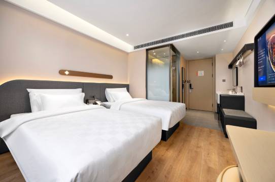 房间很干净,东西都是新的,自动窗帘,设计人性化,床头有自动感应灯方便起夜,去景区都是起步价,早餐味道好