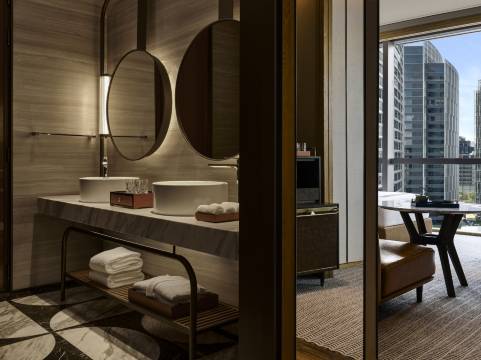 酒店坐落于浦东江畔世博地区,这座奢华生活方式地标以文化为笔,勾勒工业遗韵与全球视野的创意交响。深厚工业底蕴与文化生活于此碰撞交融,以艺术、时尚、音乐与美食为媒,演绎跨越时空的灵感对话。纵享摩登居邸的时尚格调,沉醉屋顶俱乐部桐顶或开放或私密的活力社交场域。信步可达艺术展馆、滨江绿洲与都会脉搏,一副鲜活的创意图绘正等您亲启。