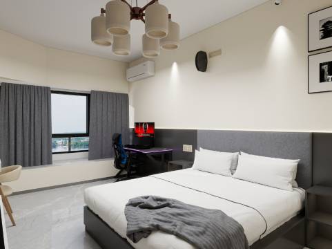 房间干净没异味,隔音效果超棒。电脑配置拉满,RTX显卡搭配高刷显示器,运行丝滑。键盘鼠标手感舒适,下次还会来