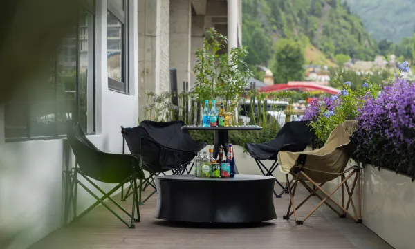 整个酒店就是移动的布依族蜡染艺术馆!大厅、走廊挂满非遗大师的原作,传统图腾与现代创意碰撞,随便站在角落拍都像艺术大片📸 客房是暖乎乎的原木风,床品软到不想起床,部分房间带全景窗,睁眼就是青黛色山景,连抱枕、装饰画都是蜡染元素,细节控狂喜