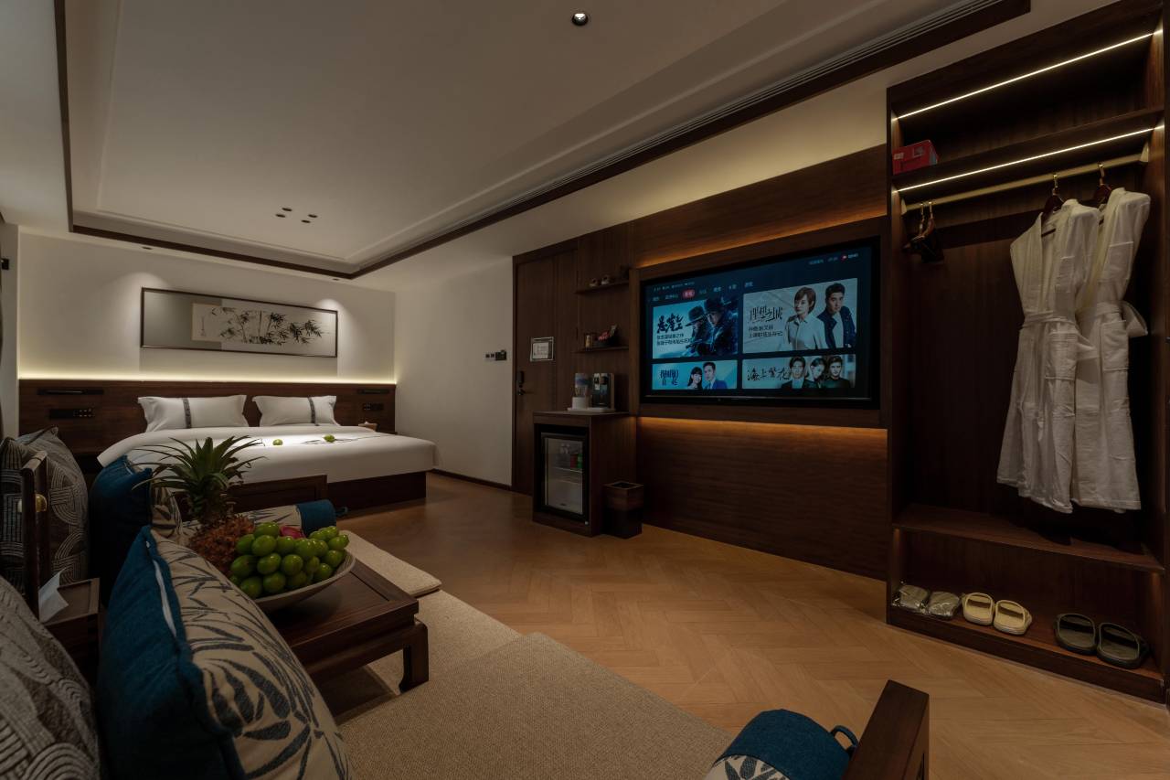 我们入住的B1房型自带独立小庭院,颇为幽静,私享一方自在天地,体验感满分。室内窗明几净,房间内饰简洁大方,古典韵味与现代设计巧妙融合,智能化设备配置得恰到好处——尤其是可调节多档温度的饮水机,细节处见人性化。床品品质惊艳,床垫软硬适中,枕头与床单亲肤透气,躺下便觉身心放松;房间卫生更是无可挑剔,毛巾浴巾洁净如新,现代感十足的淋浴设施搭配香气宜人的高品质洗浴用品,甚至贴心准备了卸妆巾,足见老板娘的细腻与周到。