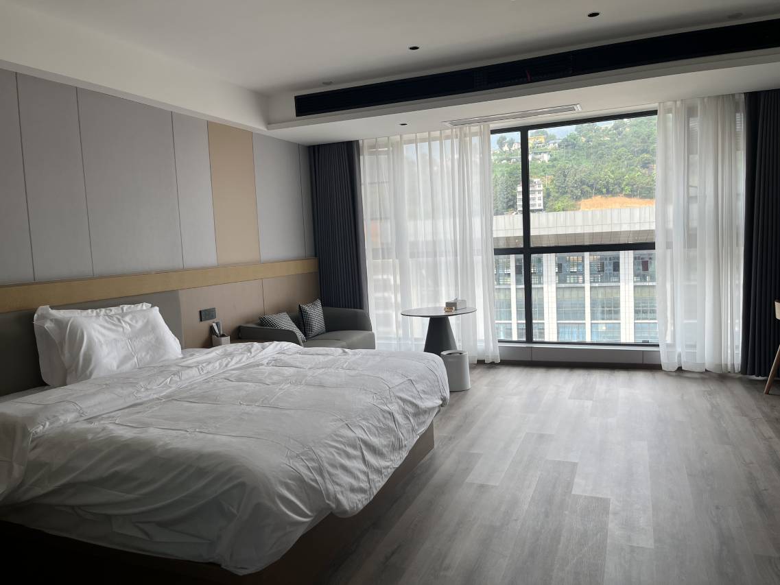 真的出乎我的意料,环境很好,干净整洁,房间宽敞,设施很新,而且是全屋智能化,在县城里住过最好的酒店。