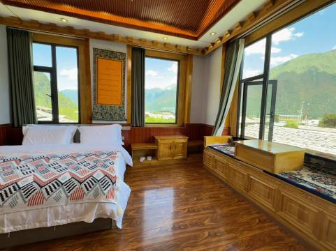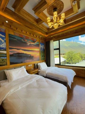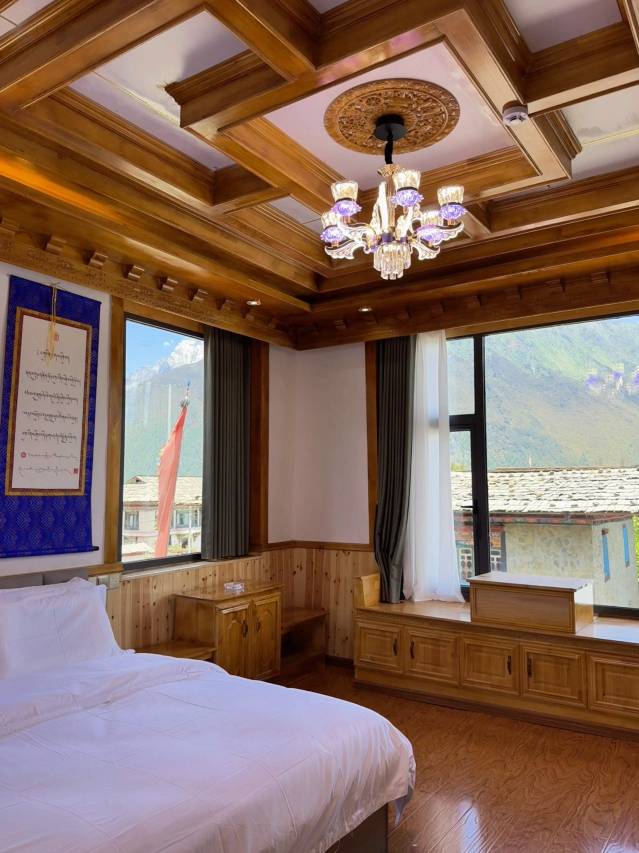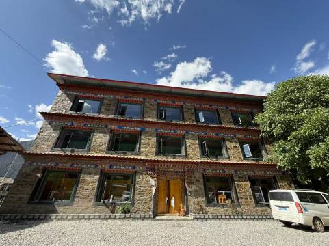 是一栋传统的藏族民居,房间很新很干净,设备齐全,窗外就是远山。附近就有吃饭的地方,味道不错。美丽的老板娘热情贴心,帮我们搬行李,给我们安排了一个安静的房间。5分好评。