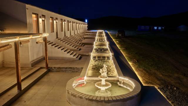 民宿老板非常热情好客,给我们推荐并准备了非常正宗的蒙餐.手扒肉很好吃,奶茶也很好喝.是我们在赤峰6天喝的最好喝的奶茶.其他很多奶食也还行.(其中奶豆腐吃不太习惯😂)当然,你想吃其他东西,老板也会开车带你去附近镇上采购.(镇子也就1-2公里吧)民宿整体很美,在达达线旁边,往草原里面大概800米这样.完全置身于整个草原之中.自然风景优越.时常还能看见不知名小动物.(可能是草原鼠,或者狐狸,小兔子).晚上还可以在民宿门口燃放烟花.也是可以老板开车带你去镇上采购(当然,肯定价格略微贵一些,也能接受),谁能拒绝在草原的夜晚欣赏美丽的烟花呢?房间整体感觉有4星标准,细节方面5星标准.有一次性毛巾,浴巾.洗浴用品也都是欧舒丹的.冰箱也免费提供了简单的软饮.房间投影也让孩子在玩完烟花之后,开心看了个动画电影.在达达线整体酒店比较差,洗澡比较难(其他酒店洗澡都要排队,等半小时以上),卫生比较堪忧的情况下,他们家算是天花板了.虽然有点贵.但是我们一行9个人从赤峰,到贡格尔,到乌兰布统,再到玉龙沙湖,最后回到赤峰.感觉还真是他家算是最有惊喜的酒店了.在达达线,乌兰布统算是天花板了.对了,他家还有免费的蒙族衣服提供,衣服质量还很不错.我们一行9人都穿了蒙族传统服饰拍了大合照..体验不错…